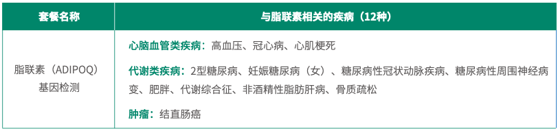 通過檢測脂聯素基因的兩個位點,評估其對心腦血管類疾病、代謝類疾病、腫瘤等疾病的影響,指導受檢者提早關注并預防與脂聯素相關的疾病。