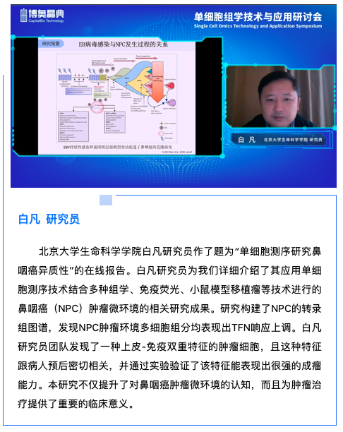 2020年10月31日,由生物芯片北京國(guó)家工程研究中心、北京博奧晶典生物技術(shù)有限公司主辦的“單細(xì)胞組學(xué)技術(shù)與應(yīng)用研討會(huì)”在北京成功舉辦。在疫情防控新形勢(shì)下,本次大會(huì)以線下現(xiàn)場(chǎng)會(huì)議與線上遠(yuǎn)程會(huì)議相結(jié)合的形式舉辦,打破時(shí)空及地域限制,以更寬更廣的交流平臺(tái),讓全國(guó)各地的單細(xì)胞領(lǐng)域?qū)<覍W(xué)者共同見證本次大會(huì)的精彩瞬間。本次會(huì)議線上累計(jì)直播瀏覽量超6000人次,線下100余位嘉賓出席。會(huì)議特采用專業(yè)級(jí)演播大廳進(jìn)行直播報(bào)告,通過5G+4K+AR的創(chuàng)新技術(shù)和高品質(zhì)傳輸進(jìn)行全程實(shí)時(shí)直播,為現(xiàn)場(chǎng)及遠(yuǎn)程參會(huì)代表帶來極好的視聽體驗(yàn)。