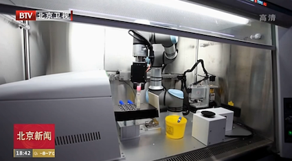 配套的車載式全集成新冠檢測移動實(shí)驗室,接通220V民用電即可正常工作,同時它自身配備發(fā)電系統(tǒng)。采樣可以通過全自動機(jī)械手和人工采樣兩種方式,病毒滅活、核酸分析都無需人工干預(yù)自動完成。操作人員只需要做一個動作,就是用移液槍將滅活后的樣本加入到芯片里封閉,放入全自動微流控核酸分析儀中進(jìn)行檢測,45分鐘便會自動顯示結(jié)果。