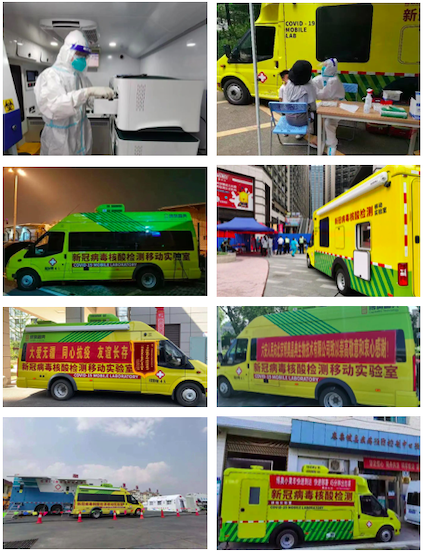 由清華大學、生物芯片北京國家工程研究中心和博奧晶典共同研發的新冠病毒核酸檢測移動實驗室是國內首臺集采集和檢測為一體的移動式新冠病毒檢測實驗室,同時也是全國首款由輕型客車裝載的移動實驗室,被鐘南山院士稱為抗疫“輕騎兵”。