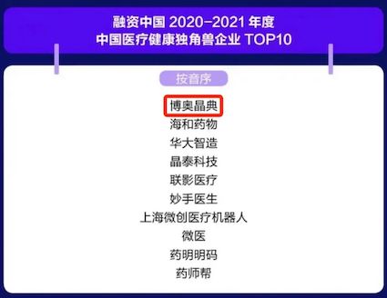 本次評選中獲得2020-2021年度中國醫(yī)療健康獨(dú)角獸企業(yè)TOP10的榮譽(yù),進(jìn)一步力證了博奧晶典在生命科學(xué)領(lǐng)域的發(fā)展?jié)摿Γ苍俅物@示了業(yè)界對博奧晶典的關(guān)注與肯定。