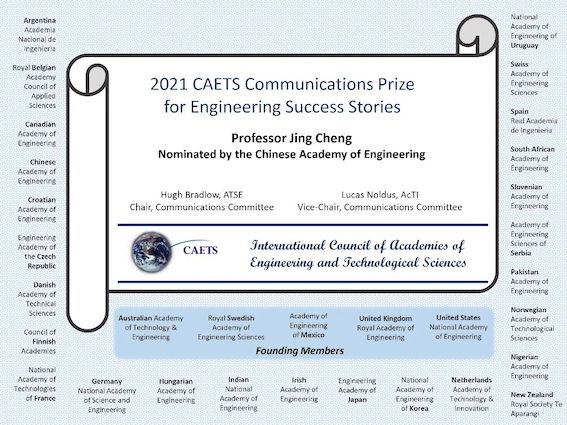 國際工程院理事會是世界各國國家級工程院的聯合組織,由分布在六個大洲的31個成員院組成。2021年初,CAETS啟動了首屆“CAETS傳播獎”的征集評選工作。作為CAETS成員,中國工程院開展了“2021年CAETS傳播獎”國內參賽作品的征集和評選工作,程京院士帶領清華及博奧團隊共同研制成功的“全集成新冠病毒核酸檢測芯片實驗室”成果視頻,獲中國工程院推薦參選。經過在國際范圍內的激烈角逐,本國作品最終摘得首屆唯一的“2021 CAETS傳播獎-工程成就獎”,充分展示了中國抗疫先進技術的國際領先水平。