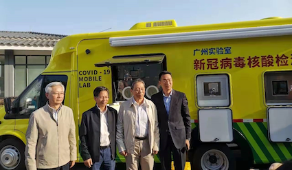 發(fā)布會上,搭載全集成芯片實驗室系統(tǒng)的新冠病毒核酸檢測移動實驗室引起了線上線下與會領(lǐng)導(dǎo)、嘉賓的一致關(guān)注。這抹備受矚目的亮黃色,是國內(nèi)首臺集采集和檢測為一體的移動式新冠病毒檢測實驗室,同時也是全國首款由輕型客車裝載的移動實驗室,被鐘南山院士命名為“輕騎兵”。