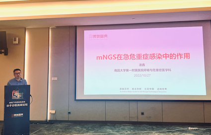 南昌大學第一附屬醫院呼吸與危重癥醫學科ICU主任淦鑫教授作了題為《mNGS在危機重癥感染中的應用》的主題報告。他介紹了目前急危重癥感染中病原診斷的急迫需求,及傳統病原學診斷方法的局限性。并介紹了mNGS技術在臨床上應用的發展情況及博奧晶典的mNGS技術。深刻分析了mNGS在急危重癥感染性疾病應用中尚存在的問題。以發表的SCI文章和臨床應用實例,介紹了mNGS技術在重癥肺炎、膿毒癥中的應用情況。對mNGS技術在臨床中的應用范圍、技術難點和對臨床感染性疾病診斷的重要意義做出了精彩的演講。