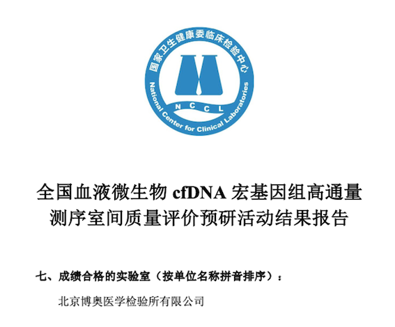 今日,國家衛生健康委臨床檢驗中心(以下簡稱“臨檢中心”)公布了2023年“全國血液微生物cfDNA宏基因組高通量測序室間質量評價預研活動結果報告”。博奧晶典旗下北京博奧醫學檢驗所順利通過本次室間質評,并且檢測病原體與樣本預期結果完全一致。
