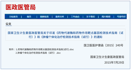 2015年7月31日,國家衛生計生委醫政醫管局印發的《藥物代謝酶和藥物作用靶點基因檢測技術指南(試行)》中,明確給出“常見藥物代謝酶和藥物作用靶點基因遺傳變異檢測結果對臨床用藥的指導建議“:根據 CYP2C19、CYP2C9、VKORC1、CYP4F2等基因的多態性檢測結果,可相應調整藥物(華法林、氯吡格雷)的給藥方案。